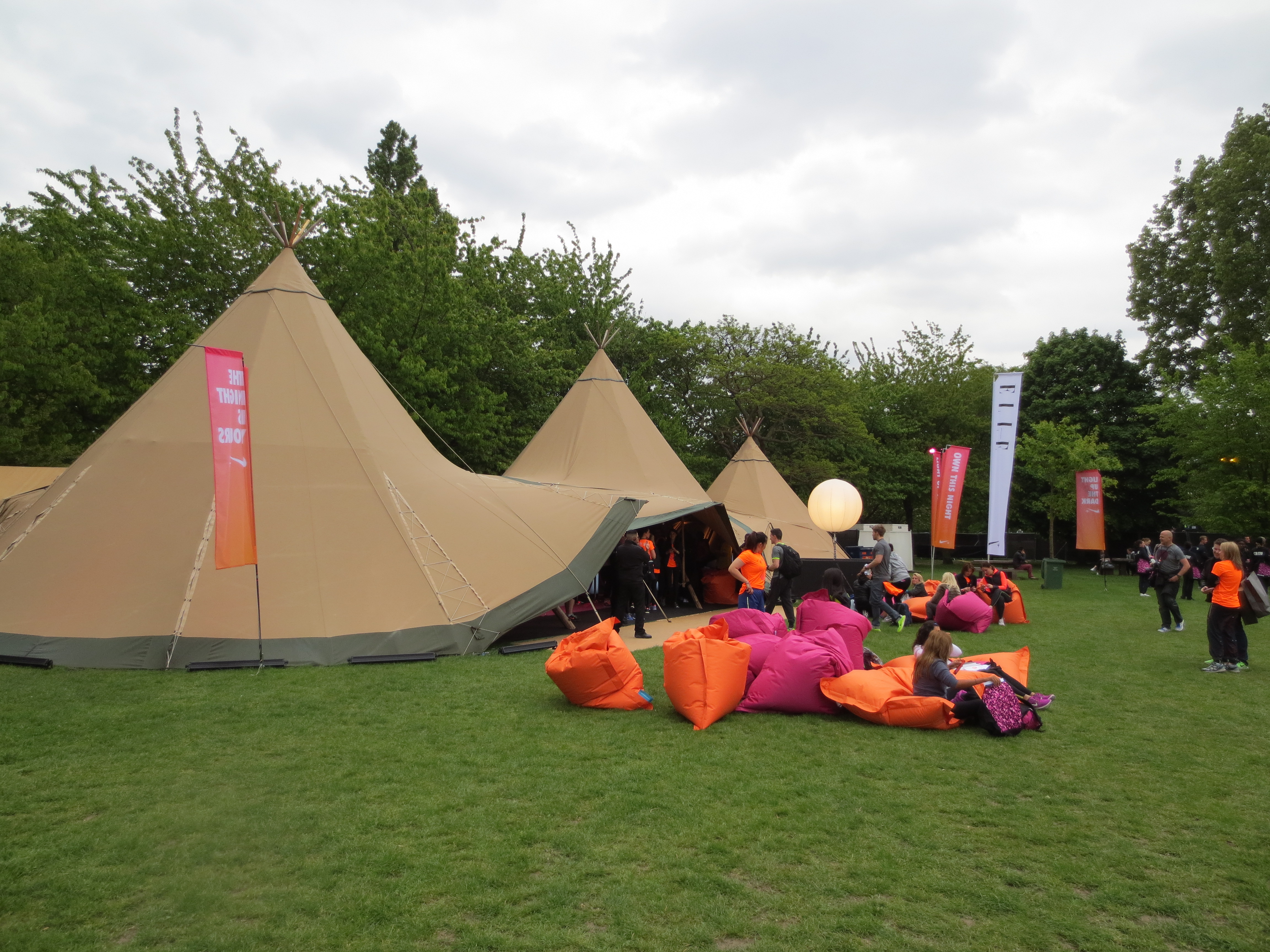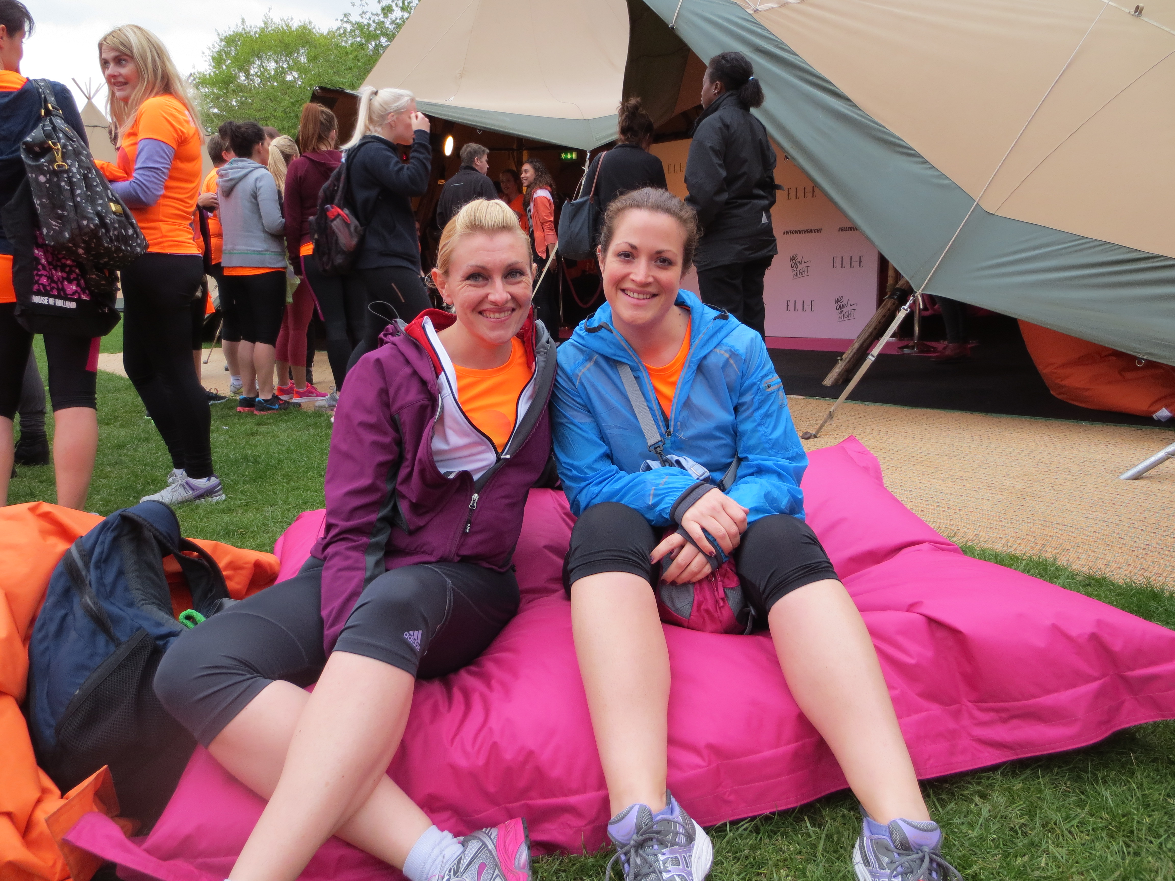 We went into the Elle tent where we were offered a free mag, coconut water and bags of various dried fruit.  Then someone asked if we would like a free Nails Inc manicure? Ermm, yes, yes please! We put our names down and went off to explore the rest of the ‘race village’. There was a caravan offering tea & crumpets, a delightful little meringue stall selling all sorts of different flavour meringues, including gin & tonic, cookies, coffee, more coconut water and a large tent selling Nike gear (obviously!) We took a seat on the large comfy bean bags and waited for our manicures. I went for a bright orange colour (because I needed to make sure my nails matched my race t-shirt), & we found out Paula Radcliffe had been in not long before us getting her nails done too, Paula was here!