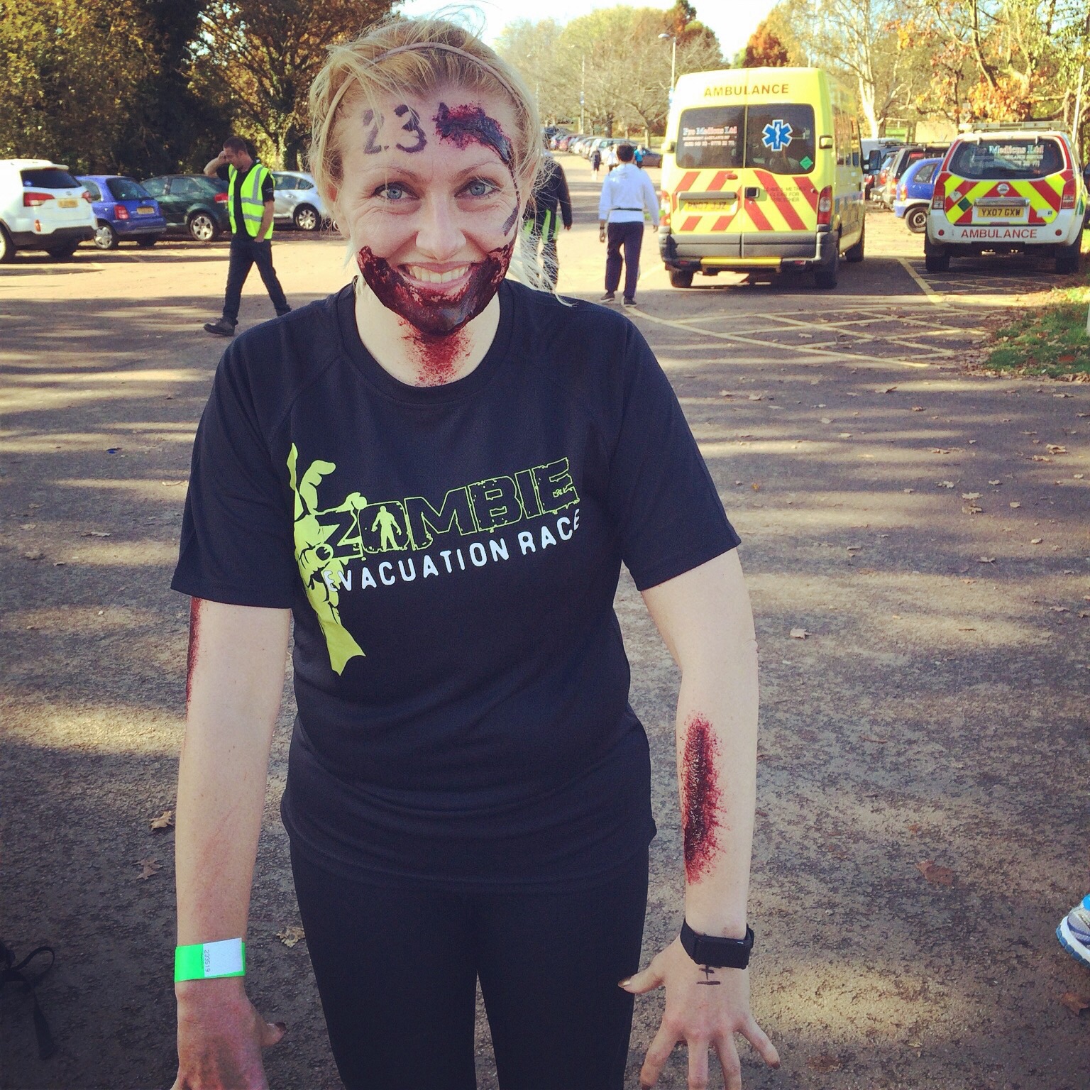 The race crew then whisked me away and turned me into a zombie so I could join in the chasing on the rugby field to scare a few unwitting suspects – it was fun, fun, fun!