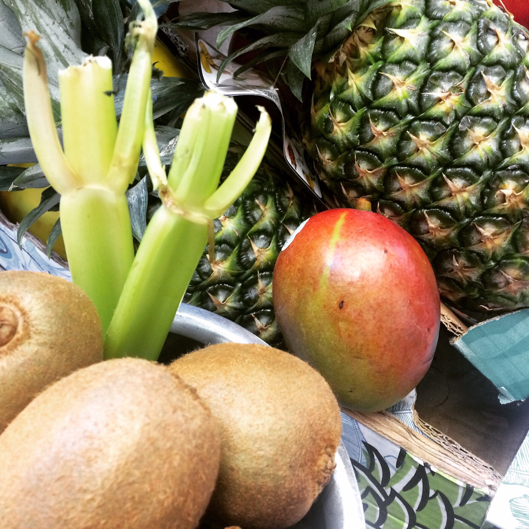 Then we got to have a go ourselves so Bonnie, Lorna, Emma and I got cracking on a Tropical Smoothie. First we used the Philips Viva 700w juicer to juice half a pineapple and 6 kiwis. We then put the juice in the Avance 2L blender and added 3 bananas, a mango and half a melon. Topping up with ice, the mixture was blended and made around 5 smoothies – delicious!